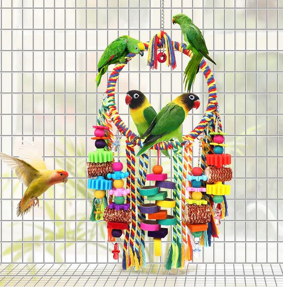 Keep your feathered friend happy with these colorful hanging bird toys made for daily beak activity and natural chewing fun. Ideal for parrots, parakeets, and small birds, they offer boredom-free cage time and help support healthy beak habits.